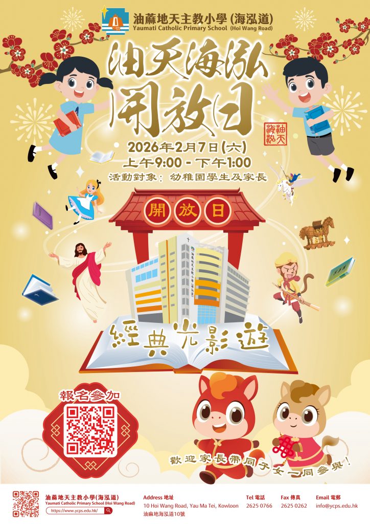 學校將於2026年2月7日(星期六),舉行「油天海泓開放日」。本年主題為「經典光影遊」,詳情請參閱宣傳海報。歡迎家長陪同孩子蒞臨參加!